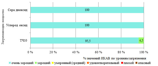 Максимальная среднесуточная концентрация углерод оксида и серы диоксида составляла 0,2 ПДК. Концентрации бензола были существенно ниже норматива ПДК.