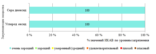 Максимальная среднесуточная концентрация углерод оксида и серы диоксида составляла 0,2 ПДК. Концентрации бензола были существенно ниже норматива ПДК.