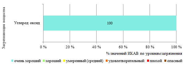 Согласно рассчитанным значениям ИКАВ, состояние воздуха в IV квартале 2025 г. оценивалось как очень хорошее. Периоды с умеренным, удовлетворительным, плохим и опасным уровнями загрязнения воздуха отсутствовали (рисунок 16). По сравнению с III кварталом 2025 г. и IV кварталом 2024 г. качество атмосферного воздуха не изменилось.