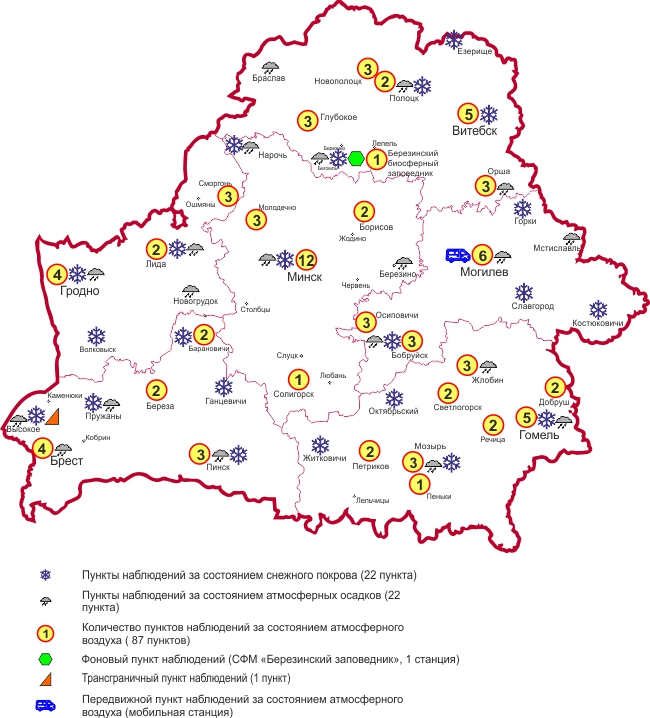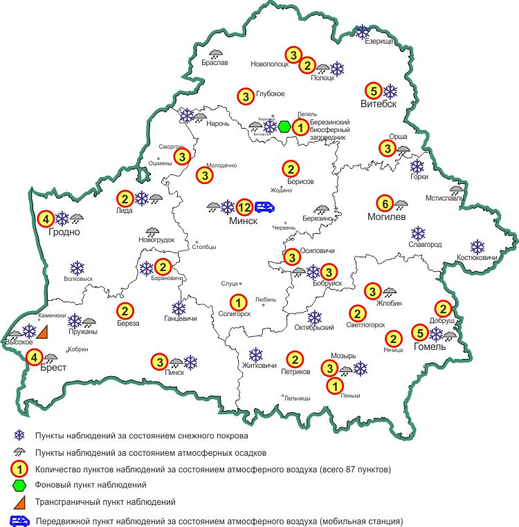 Схема размещения пунктов наблюдений мониторинга атмосферного воздуха